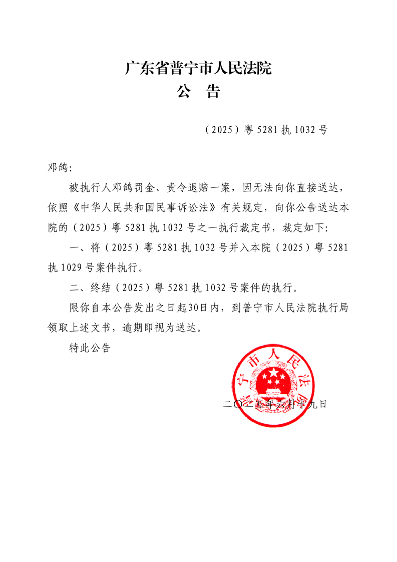 普宁法院公告(邓鸽)