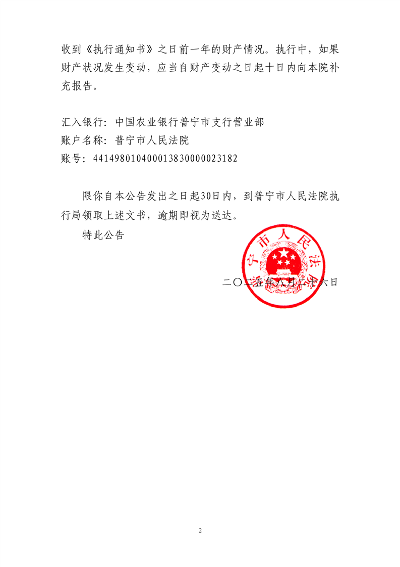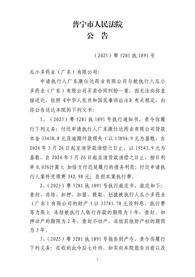 普宁法院送达公告(瓜小多药业)