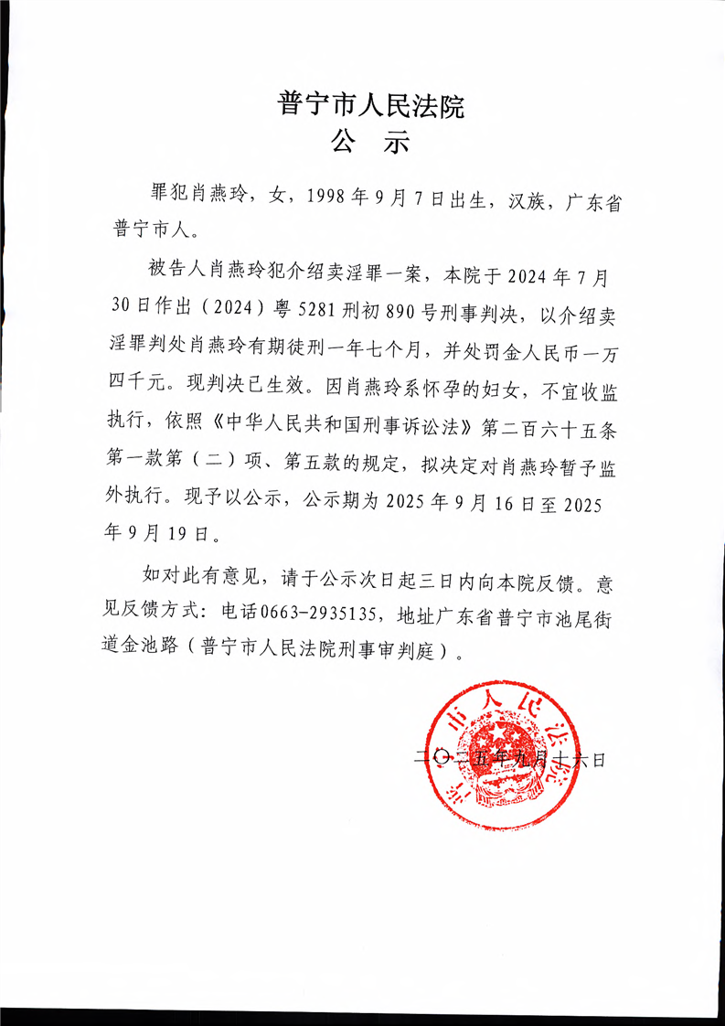 肖燕玲公示