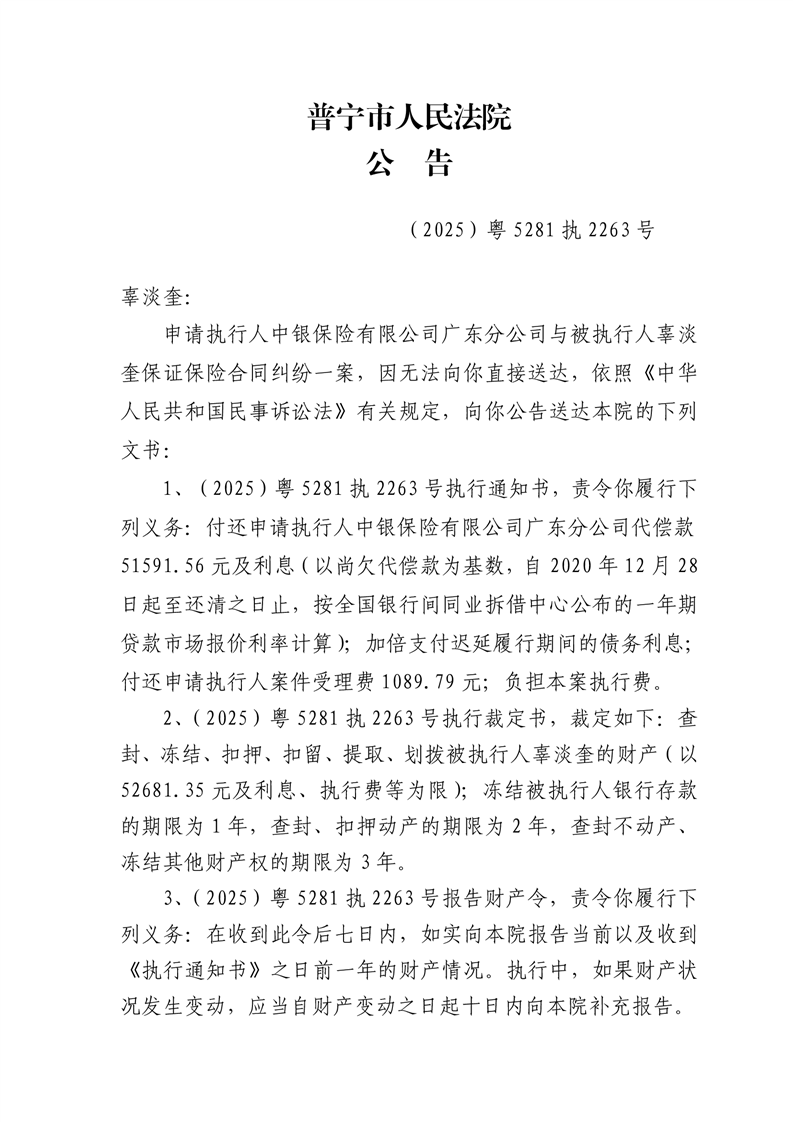 普宁法院送达公告(黄泽伟)