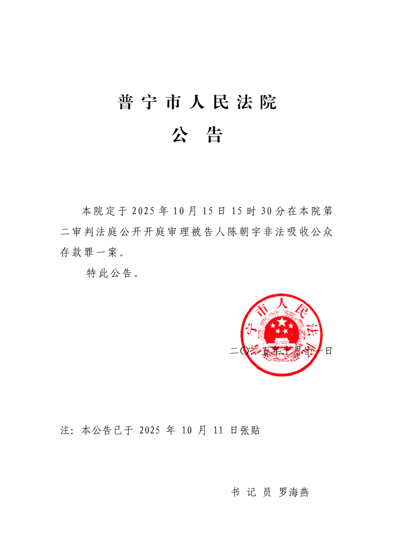普宁法院刑事开庭公告