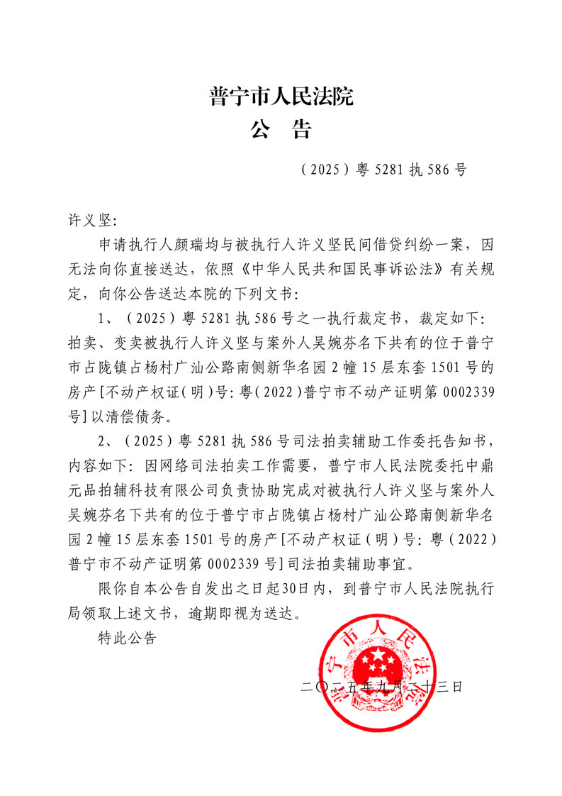 普宁法院公告送达(庄瑞丰、普宁市浩顺房地产开发有限公司)