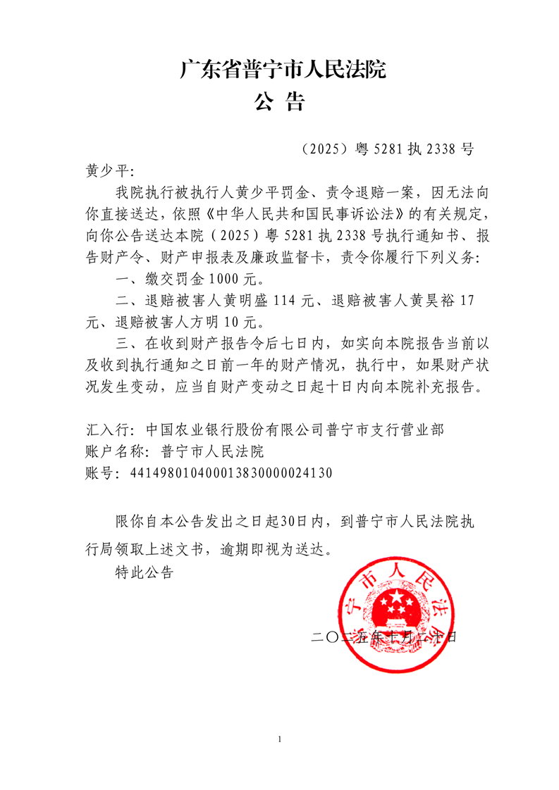 普宁法院公告送达(庄瑞丰、普宁市浩顺房地产开发有限公司)