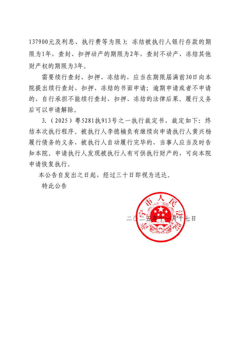 普宁法院送达公告-李德楠