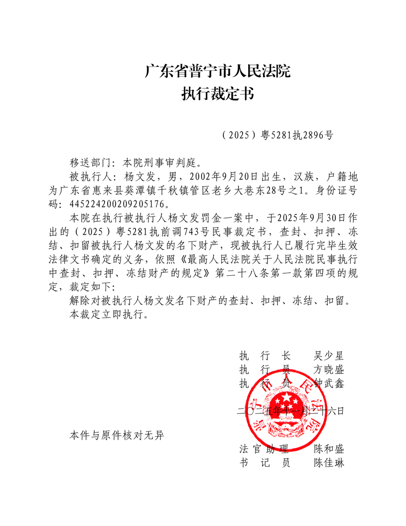 普宁法院公告送达终结执行裁定书(陈锦端、陈伟忠、陈创国)