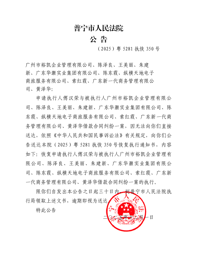 普宁法院送达公告(广州市裕凯企业管理有限公司、陈泽良等)