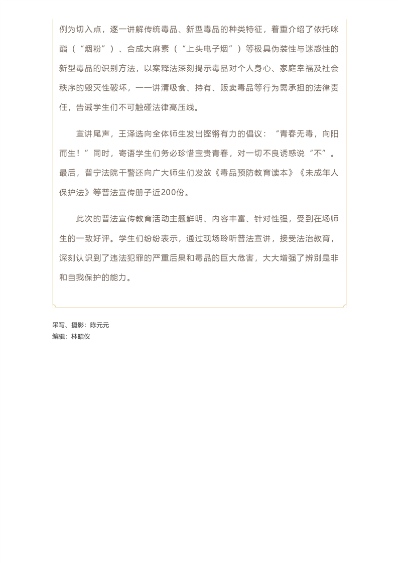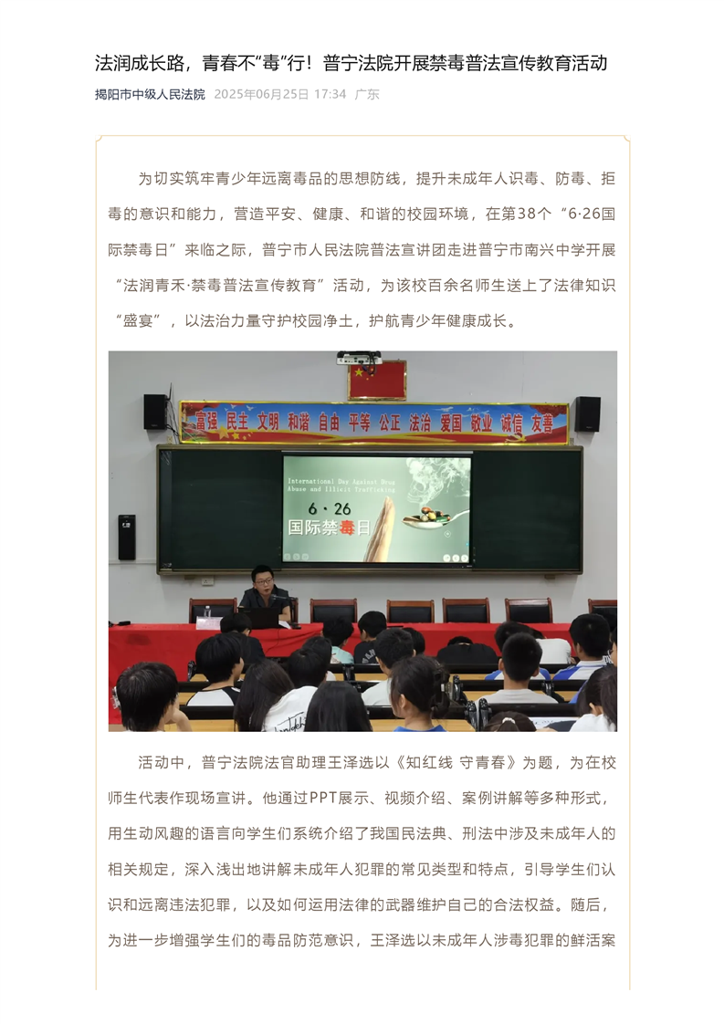 法润成长路,青春不“毒”行!普宁法院开展禁毒普法宣传教育活动