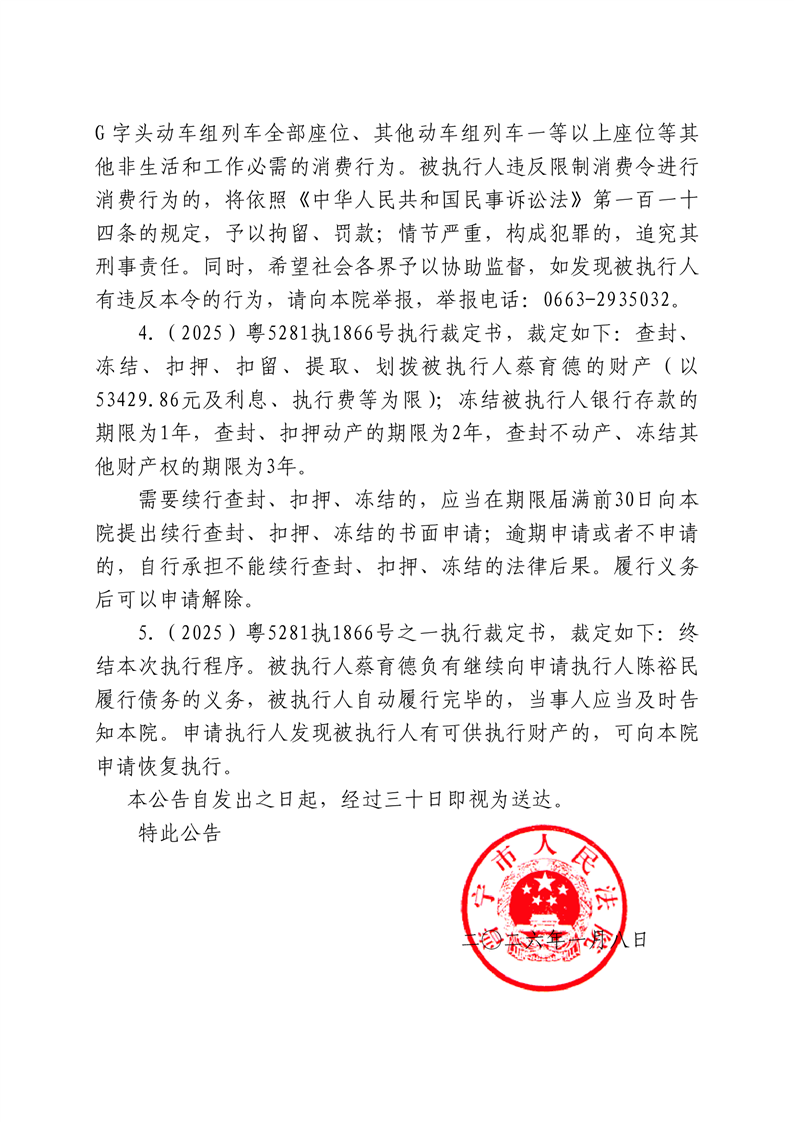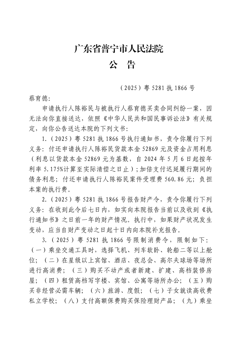 普宁法院送达公告-蔡育德