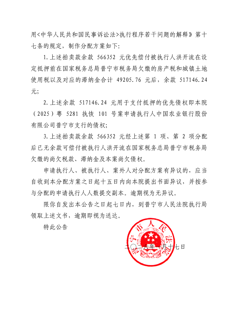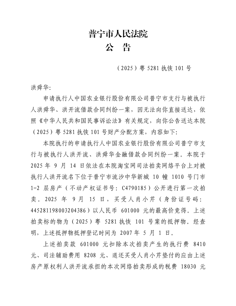 普宁法院送达公告(洪舜华)