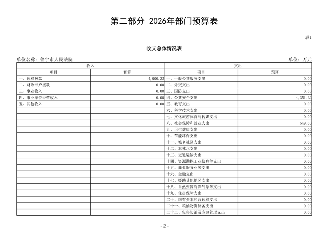 2026年普宁市人民法院部门预算