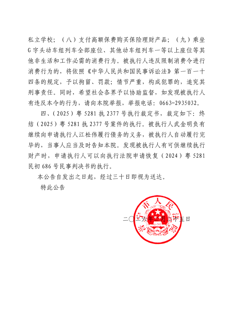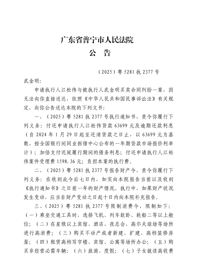 普宁法院送达公告-武金明