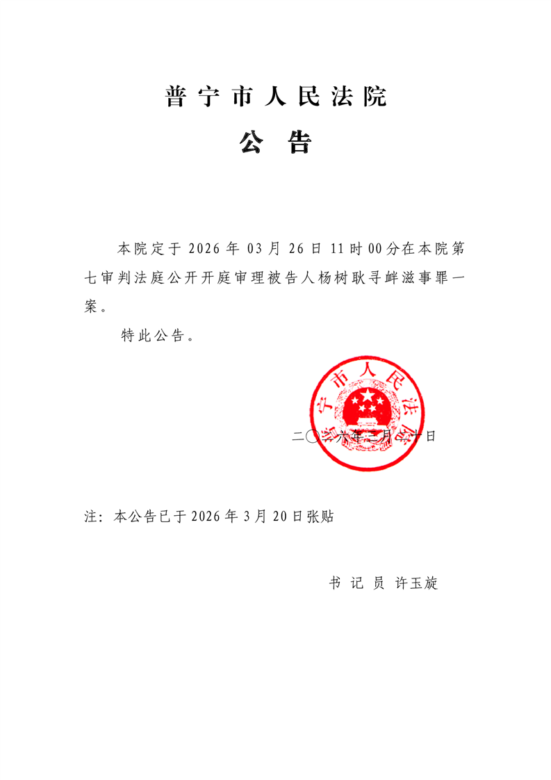 普宁法院开庭公告(杨树耿)