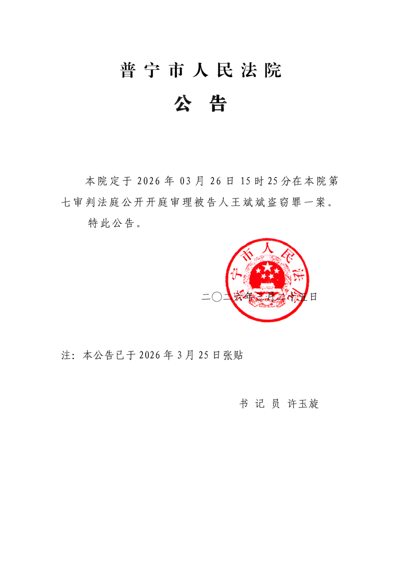 普宁法院开庭公告(黄振海等)