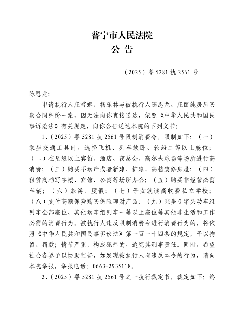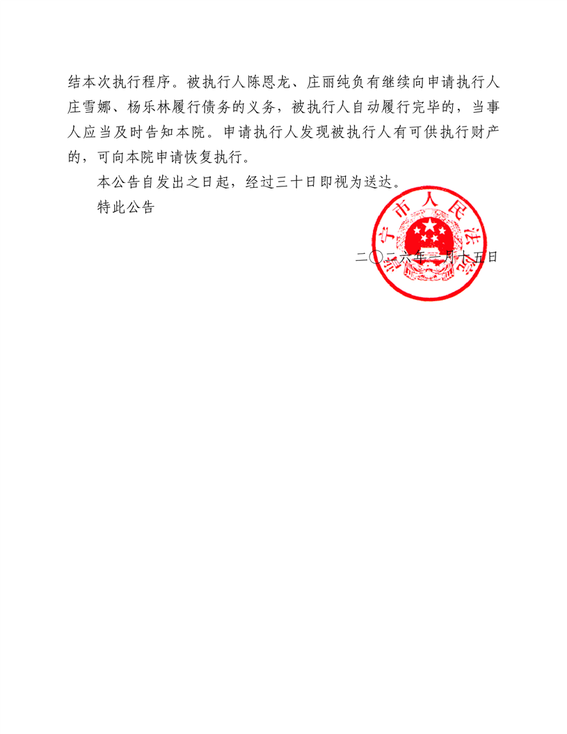 普宁法院送达公告(陈恩龙)