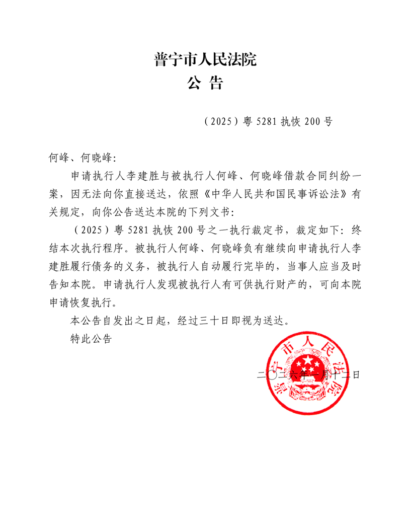 普宁法院送达公告(何峰、何晓峰)