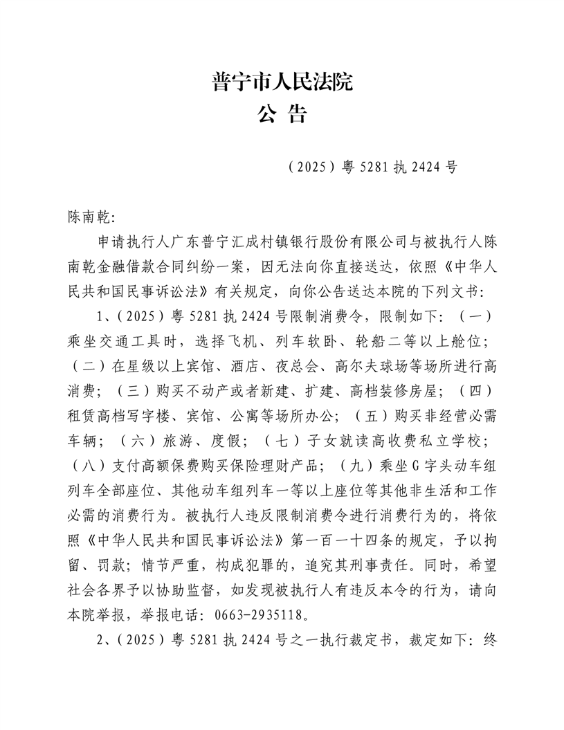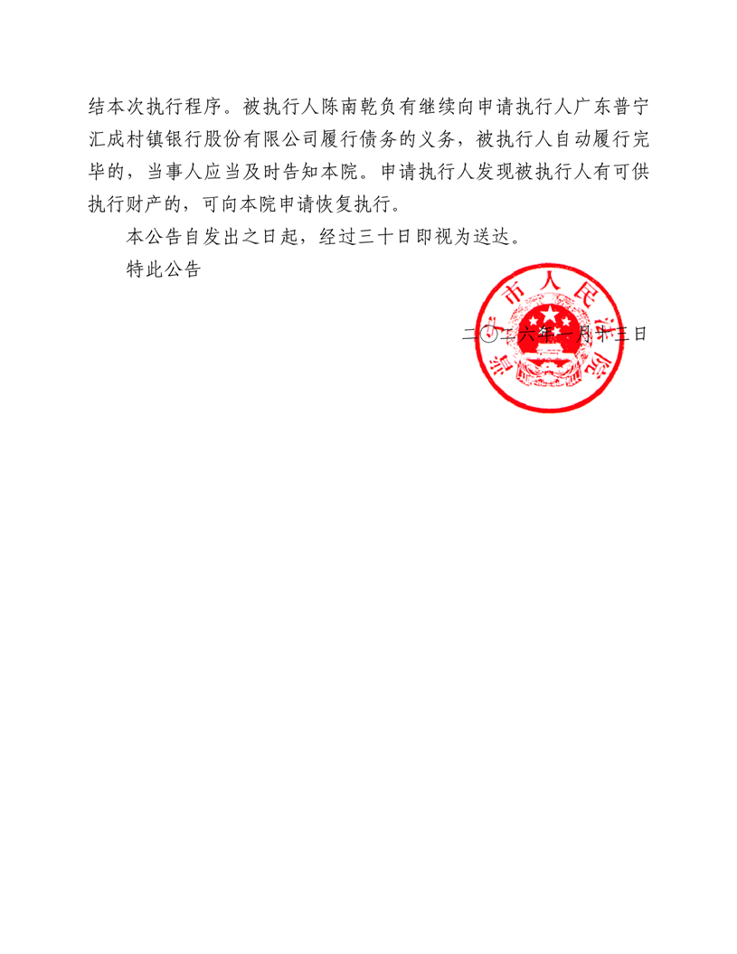 普宁市人民法院送达公告(陈南乾)
