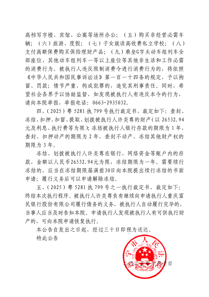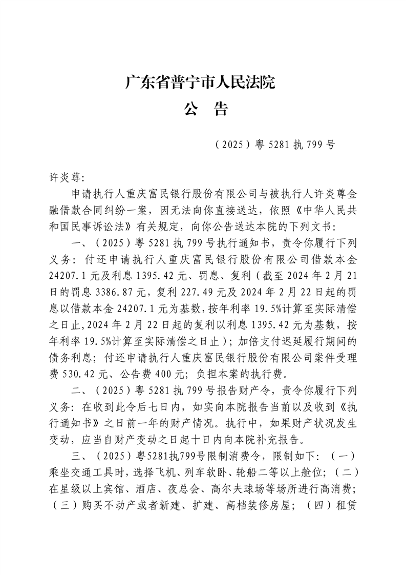 普宁法院送达公告-许炎尊